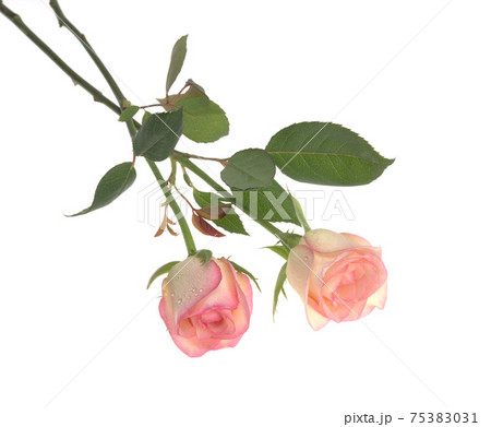 粉紅色的鬱金香和紅色玫瑰花瓣在白色背景上