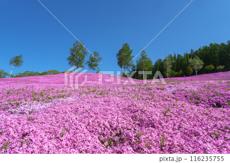 五月,北海道壯觀的春天花園瀧上公園的苔蘚福祿考