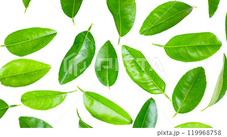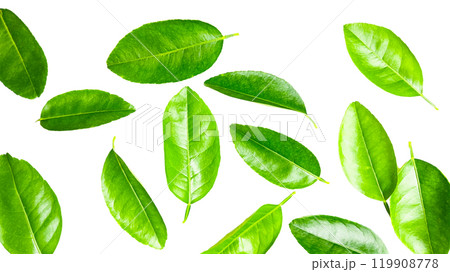 Cut-out of a green lime leaf on a white background with clipping paths, showing natural texture and vivid color