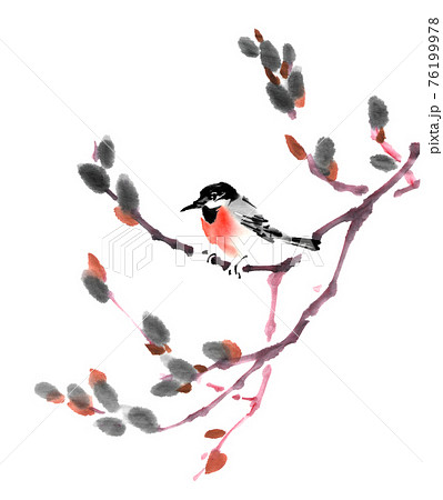 水墨畫梅枝上棲息的山鳥