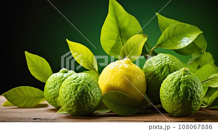 Kaffir lime plant or RUTACEAE, Citrus hystrix DC or Kaffir lime or Leech lime or Mauritius papeda