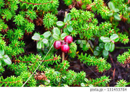 Lingonberry vaccinium vitis-idaea, cluster, paths