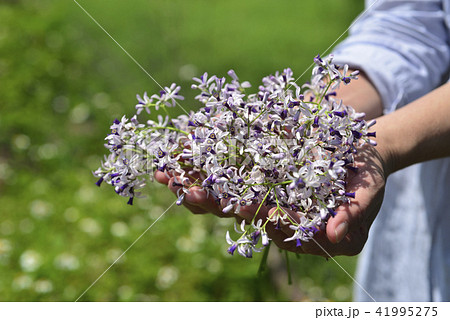 手上的紫色苦楝花
