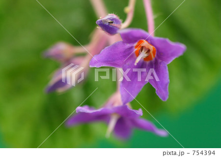 在赤目溪谷的岩石上,白色花瓣中生長出美麗的星形紫色苦苣苔