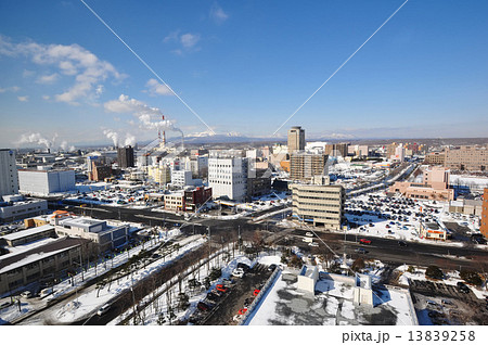 從北海道附近的太平洋,春天的Tomakomai,Shirao的街道和南部的山脈看