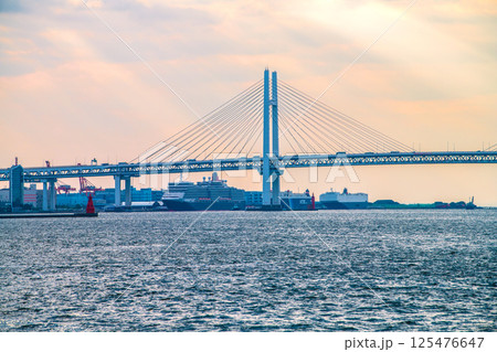 抵達長崎港的遊輪(伊莉莎白女王號)從女神大橋俯瞰全景[長崎市]
