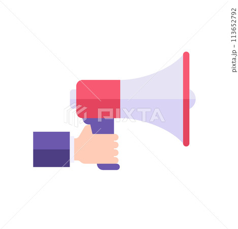Business man in suit holding megaphone announce promo vector flat illustration politician agitation