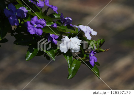 開花在三鷹中原的桃紅色和白色多彩多姿的喇叭花