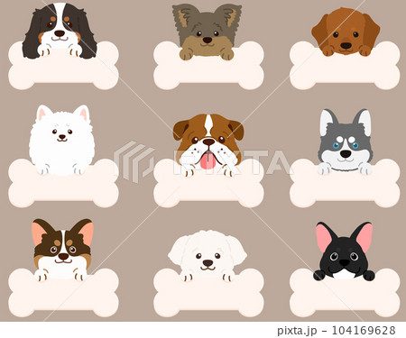 簡單可愛的狗臉插畫集D帶骨頭形便條帶前爪無主線