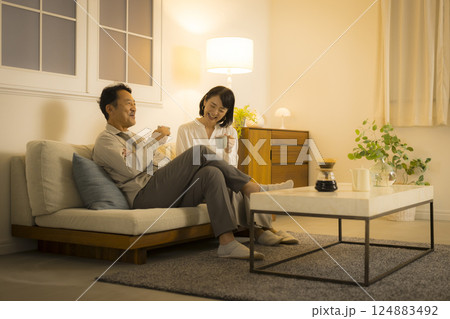 晚上客廳裡的中年夫婦
