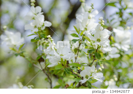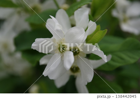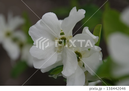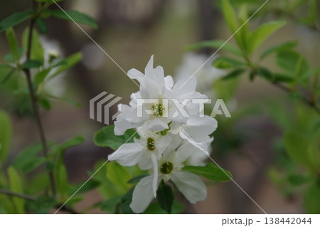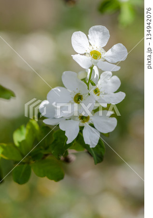春天開白色花朵的利休梅(Rikyubai)