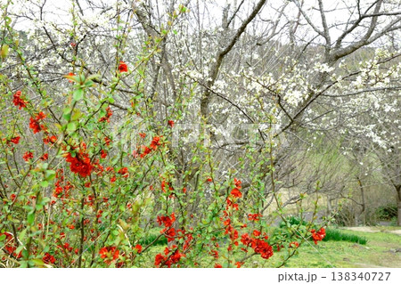 利休梅和涼亭