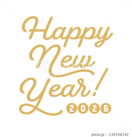 黃色背景上的黑色“新年快樂 2026”字樣 - 2026 年新年賀卡裝飾材料