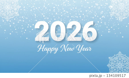 一張漂亮的淺藍色「2026新年快樂」背景圖,帶有雪花和漸變效果。