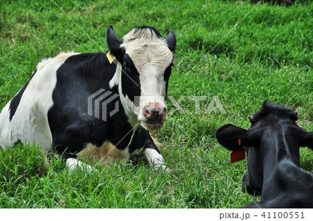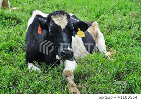 霍爾斯坦牛(荷蘭乳牛)愜意的吃草,台灣花蓮牧場,Hualien,Taiwan