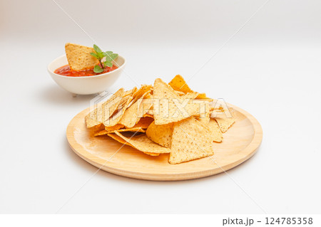 玉米餅片和莎莎醬