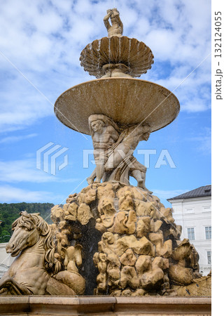 Residenzbrunnen fountain in Residenzplatz square in the historic centre Altstadt of Salzburg in Austria