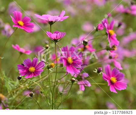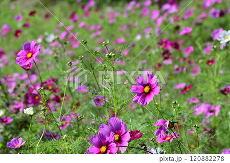 菊花盛開的景觀,具有不尋常的紅紫色花瓣形狀,是由兩種菊花突變而成的