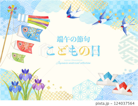 水彩手繪鯉魚旗與兒童節向量插畫集