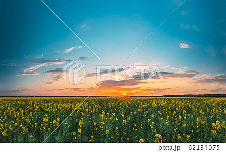Sunset Sunrise Over Spring Flowering Canola, Rape