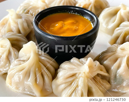 神戶市元町和南京町的商店裡排列著豬肉包子