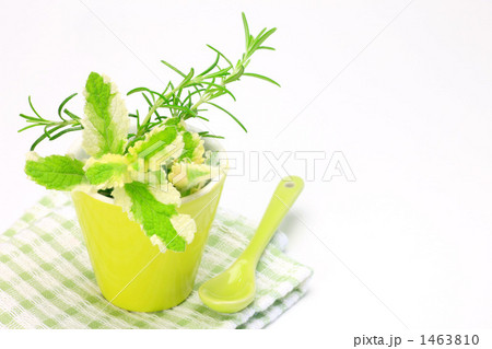 Rhubarb sorbet with cinnamon, vanilla and pineapple mint