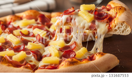 Hawaiian Pizza Slice Pull with Crispy Crust and Juicy Pineapple