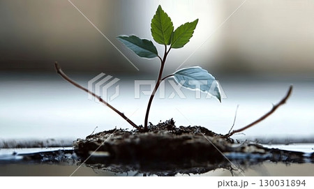 a young plant sprouting from soil against a blue sky, symbolizing new beginnings, growth, and the resilience of life.