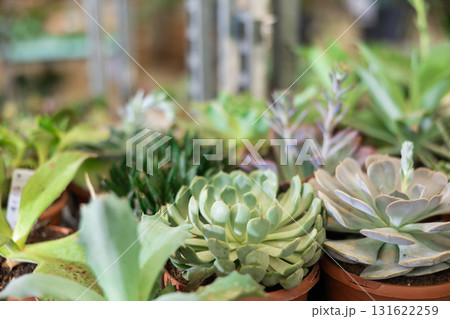 Sprouts plants in terracotta pots on cart at home. Houseplant after replanting into new flowerpot