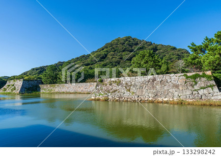 萩城的天守閣、石牆、指月山(山口縣萩市)