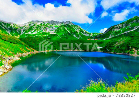 夏季海拔2450m的日本山。富山縣立山脈室生堂的景色。三栗池