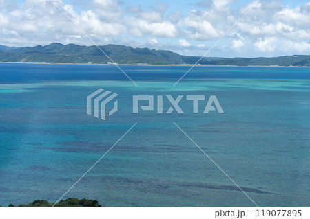 從沖繩縣恩納村萬座岬看到的藍色大海