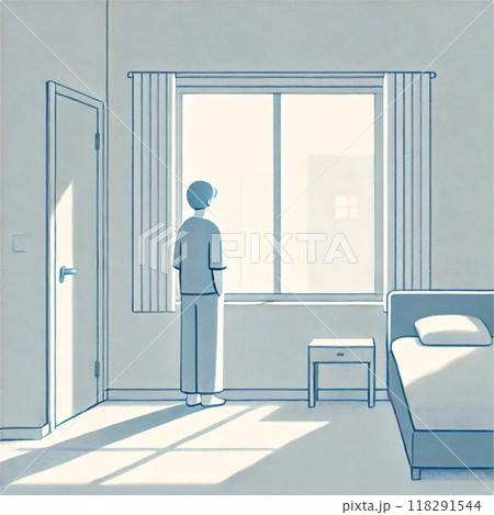 一個人孤獨地透過窗子看外面的場景