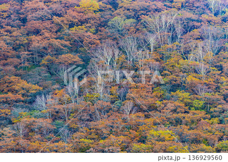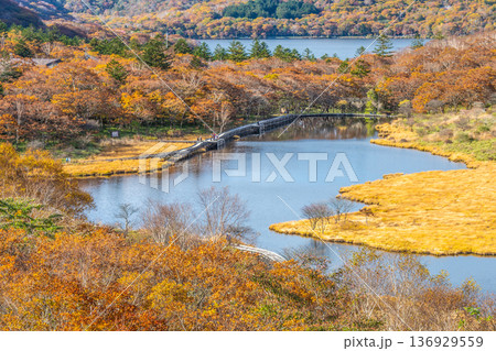 赤城山脈、角滿淵從鳥居嶺眺望、赤城大沼、深秋景色