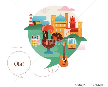 Portugal touristic attractions, landmarks and symbols colorful banner, poster and postcard