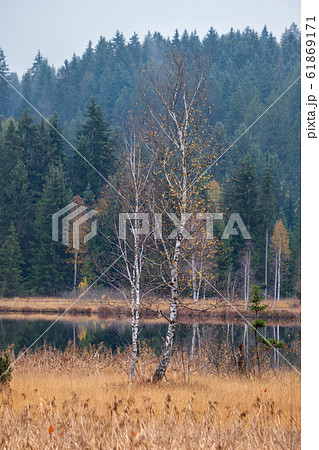 Mountain alpine autumn lake Schwarzsee, Kitzbuhel,