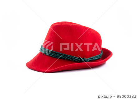 Felt Tyrolean hat on white. Ocktoberfest Bavarian red hat.