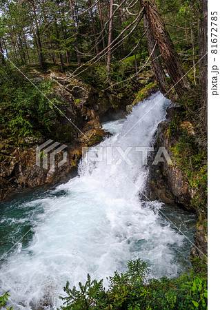 The view of Stuibenfall in Oetztal Alpen in Austria
