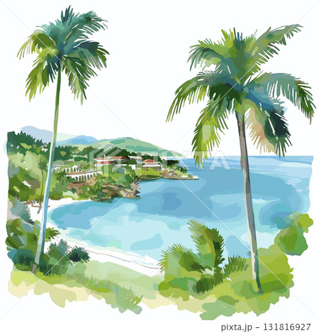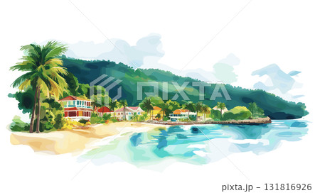 Montego Bay. Montego Bay hand drawn watercolor illustration