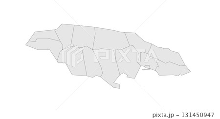 Jamaica political map of administrative divisions - parishes. Grey blank vector editable map EPS.