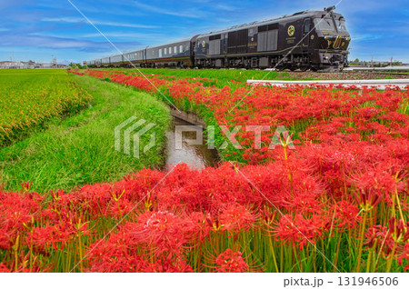 日向藥師伊勢原綠蔭道路兩旁的田野裡,紅蜘蛛百合盛開