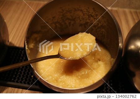 一匙蒜泥放在金屬碗裡