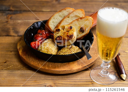 大蒜黃油吐司和酒表圖像