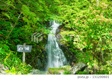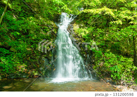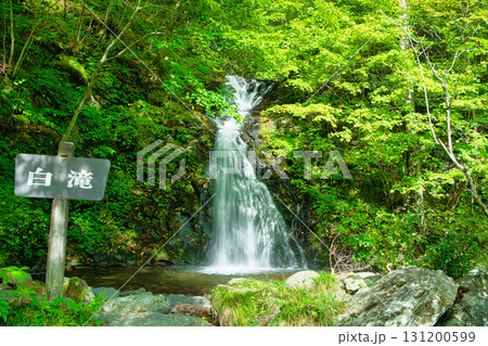 秋田縣二嘉穗市木方町小瀧 從瀑布盆地拍攝納索的白瀧溪谷(白瀧)的慢快門攝影
