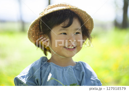 站在花田裡的小孩
