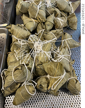 在台中傳統市場裡拍攝一串新鮮的粽子