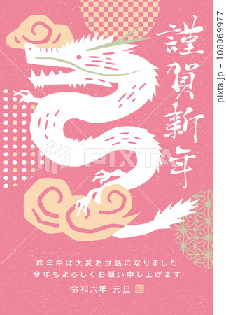 2024日式現代可愛手繪生肖龍年新年卡片設計