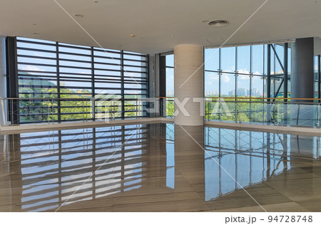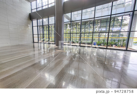 簡單的房屋設計:具有水彩和木版美學的極簡主義建築、精緻的大理石細節、美麗的陽光藍天和平靜的花園風景。