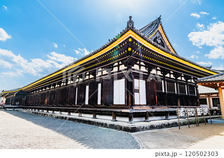 京都府京都市蓮華院(三十三間堂)正殿的深秋景色