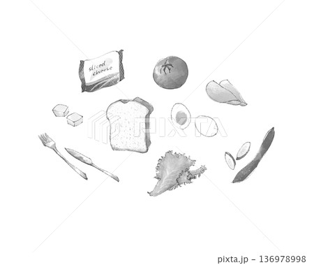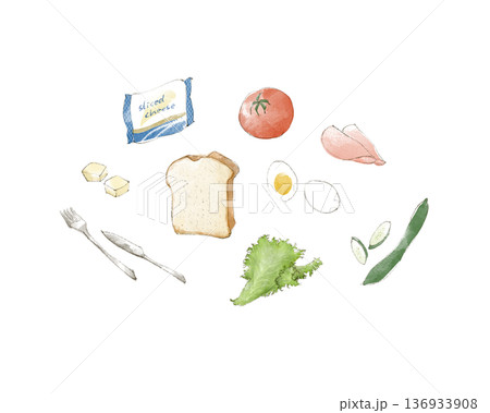 便當盒和配菜的可愛插圖集,手寫,文字空間